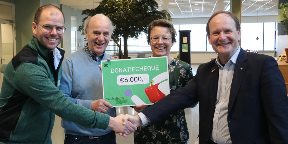 Board members Han Neef and Gerard van Gorkum accepted the check on behalf of Voedselbank West-Friesland. "This is truly an overwhelming amount!" respond Han and Gerard. "We can use this so well. Currently, 90 families in the region depend on our help. This amount is huge for us."