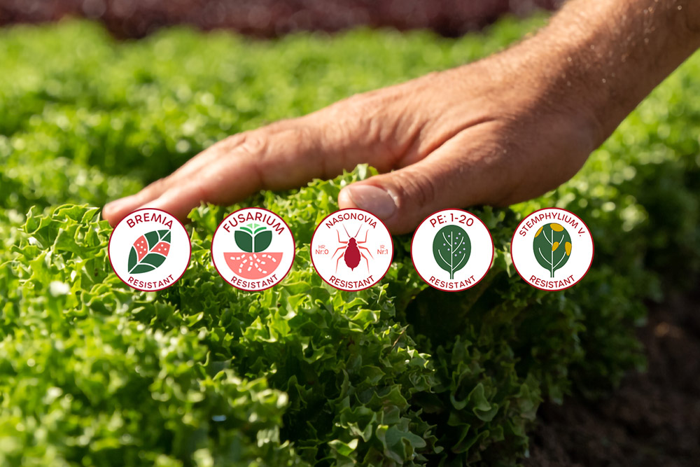 See Innovation in Action Tour our demo fields and discover new leafy varieties with advanced resistance to Bremia, Fusarium, Pe, and Nasonovia. Resistant portfolios are not just an agronomical trait, they’re a strategic decision that secures long-term success. That’s why we keep investing in breeding for resistances to help your crops stay strong and productive. Discover our proven resistant portfolios: