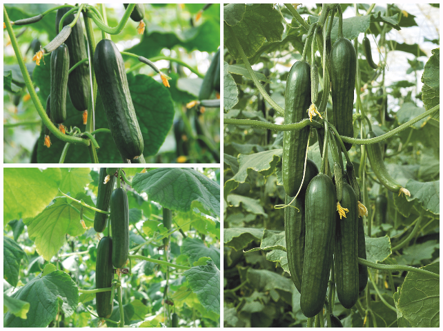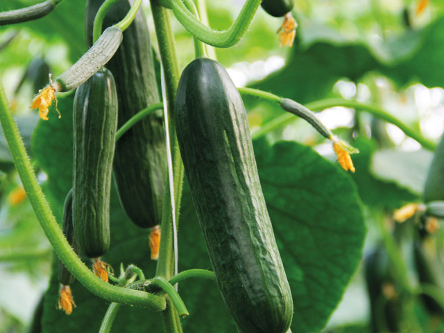 Katrina is a robust and productive mini-cucumber with an open plant habit and only a few laterals. The fruits, 3-4 per node, are of top quality. They are glossy, nicely ribbed, very uniform and 6 in. (16 cm) long. Good resistance package for protected crop production.